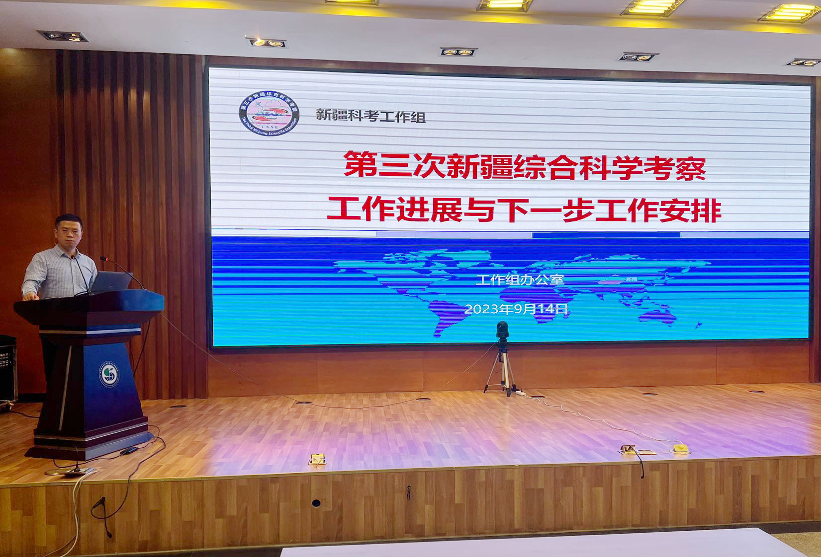 工作组办公室汇报了新疆科考工作进展、已取得的阶段性成果、下一步工作计划、野外科考安全管理规定及科考报备工作注意事项。工作组办公室负责人周晓兵研究员表示,各项目应在保证野外安全的基础上,做好相关成果凝练、注重重大成果产出,并在规定时间节点前完成各项科考任务。