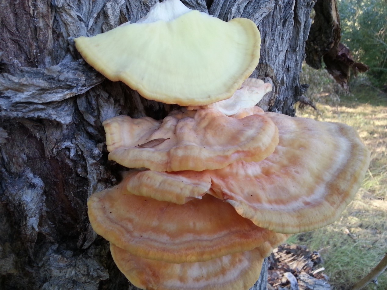 新疆硫磺菌在公园、行道树和天然林中均能生长,该菌以树木中的纤维素和半纤维素为养分,在夏季形成莲花状、橘黄色的大型子实体(蘑菇),故该菌比较容易识别。