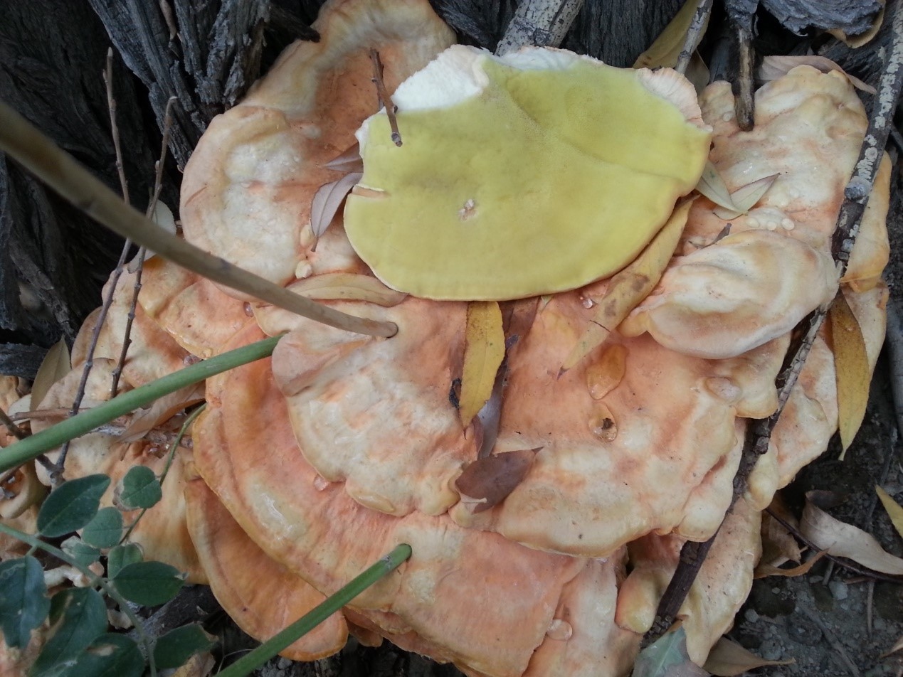 新疆硫磺菌在新疆北部的伊犁河谷、石河子和布尔津等地均有分布,是我国新疆的特有真菌。新疆硫磺菌长可达35厘米,宽可达25厘米,高可达30厘米,新鲜时重可达4千克,因此新疆硫磺菌是一种大型微生物。其子实层体由很多菌管组成,表面形成孔口,因此,新疆硫磺菌也是一种多孔菌。由于其孔口表面新鲜时为硫磺色,所以称为硫磺菌。